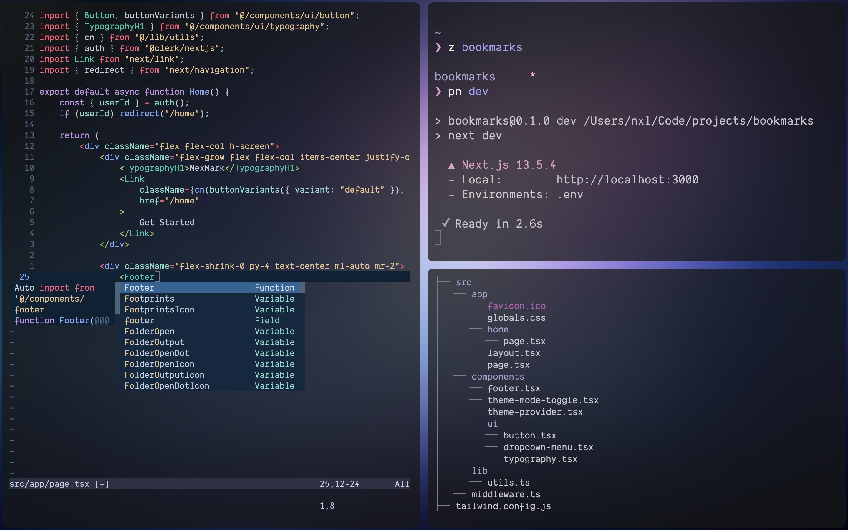 Dont't worry, I still primarily use VSCode for anything serious, but I did create a new Neovim configuration from scratch which I don't plan on updating frequently. I kept it quite minimal and used very few plugins. Here's Neovim and VSCode side by side.